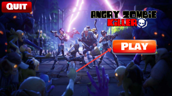 1、在Angry Zombie Killer主界面點(diǎn)擊PLAY,進(jìn)入僵尸射擊關(guān)卡,準(zhǔn)備消滅場(chǎng)景中僵尸。