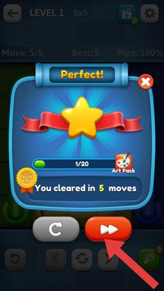 3、確認(rèn)本關(guān)任務(wù)達(dá)成后點(diǎn)擊右下角箭頭,即可解鎖后續(xù)更有難度的水管拼接挑戰(zhàn),逐步提升操作技巧。