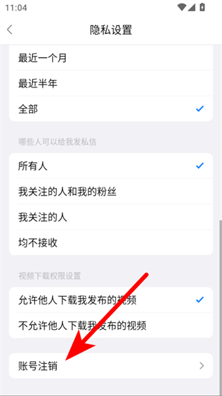 4、在隱私設(shè)置頁面,點(diǎn)擊賬號注銷選項,即可按照提示完成賬號注銷操作。