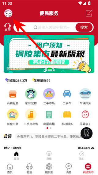 1、打開銅陵網(wǎng)APP,點(diǎn)擊左上角頭像,進(jìn)入個人中心頁面。