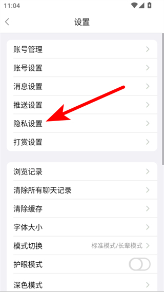 3、在設(shè)置界面中,點(diǎn)擊隱私設(shè)置選項,進(jìn)入隱私設(shè)置頁面。
