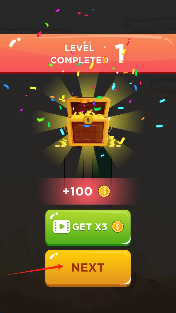 2、通關(guān)后點(diǎn)擊黃色NEXT按鈕,進(jìn)入下一個(gè)關(guān)卡挑戰(zhàn),點(diǎn)擊按鈕進(jìn)入到游戲的下一關(guān)。