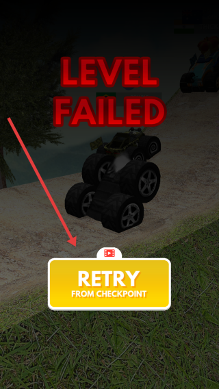 3、若Level1挑戰(zhàn)失敗顯示LEVEL FAILED,點擊RETRY FROM CHECKPOINT,從最近檢查點重新開始比賽,調整策略爭取通關。