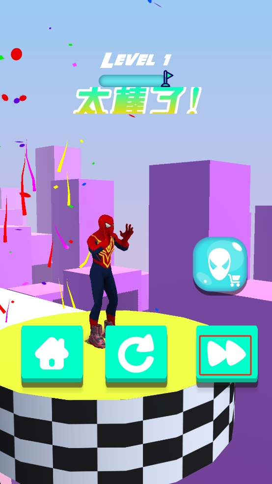 3、道具系統(tǒng)豐富:提供超級(jí)多好玩的道具,加速道具能提升移動(dòng)速度,護(hù)盾道具可抵擋一次傷害,蛛絲強(qiáng)化道具能增加蕩躍距離,道具為闖關(guān)提供了更多選擇。