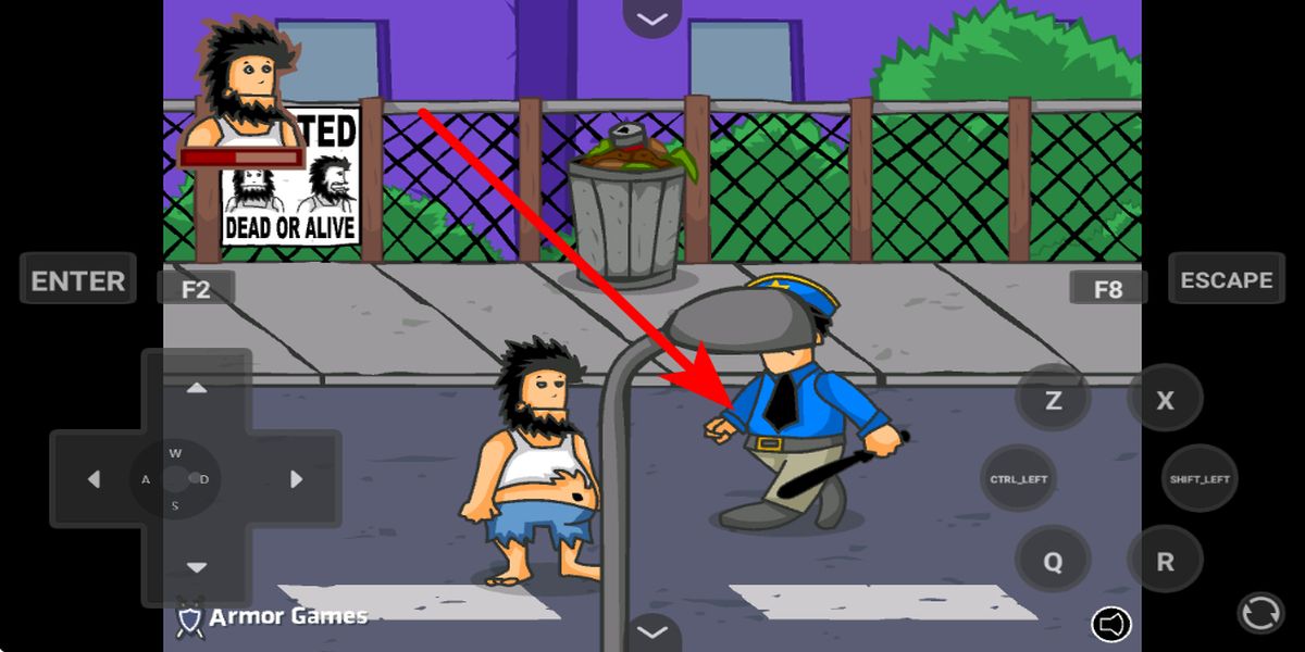 1、卡通的畫面:采用卡通風(fēng)格設(shè)計(jì),色彩鮮艷形象夸張,生動(dòng)描繪流浪漢、敵人及場景,契合搞笑主題,能吸引各年齡段玩家投入其中。