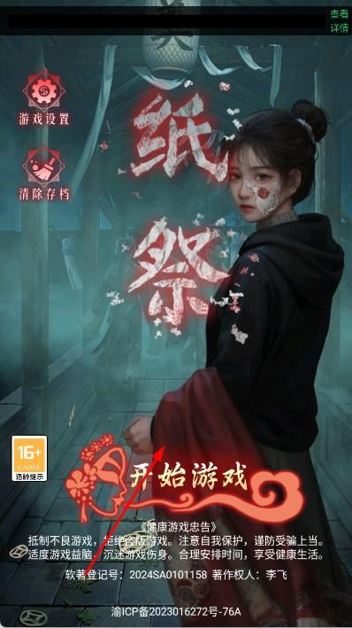 1、進入游戲,點擊開始游戲,開啟中式懸疑解謎之旅,進入第一章詭婚場景。