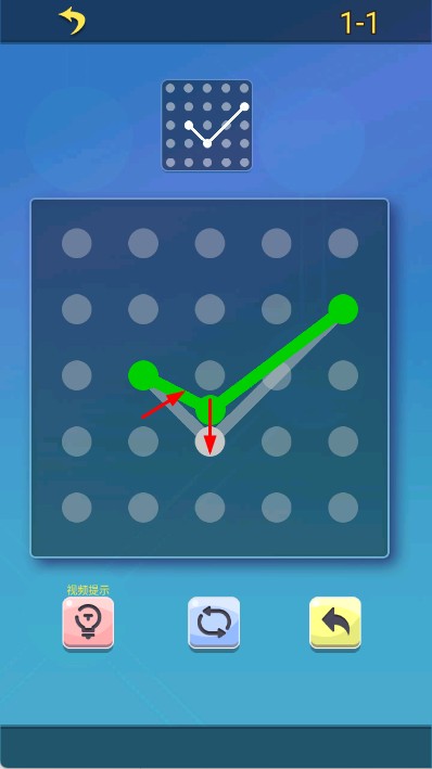 2、在關(guān)卡中,依據(jù)上方圖案提示,用手指在點(diǎn)陣上連線,按指引繪制對(duì)應(yīng)圖形,調(diào)整線段連接點(diǎn)陣。