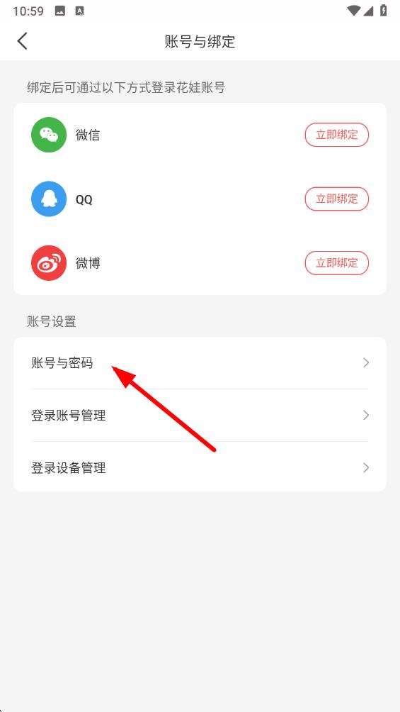 3、在賬號(hào)與綁定頁(yè)面點(diǎn)擊賬號(hào)與密碼,進(jìn)入賬號(hào)與密碼設(shè)置頁(yè)
