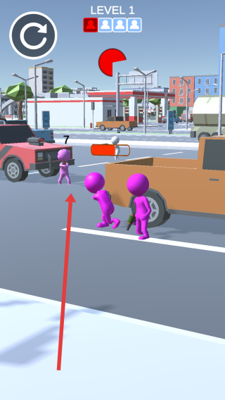 2、在Level-1中,可以觀察紫色敵人位置,通過點(diǎn)擊屏幕進(jìn)行射擊,消滅敵人,推進(jìn)任務(wù)進(jìn)程。