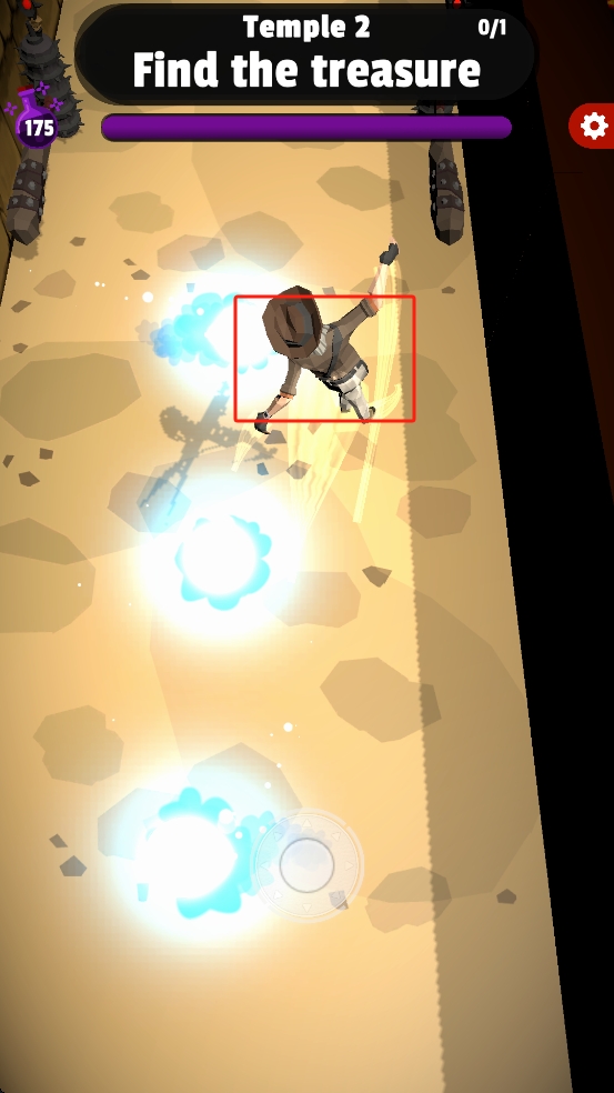 2、這關(guān)我們需要躲避藍色的爆炸物,靈活移動穿過路徑,繼續(xù)尋寶,還需要注意技能或道具的使用。