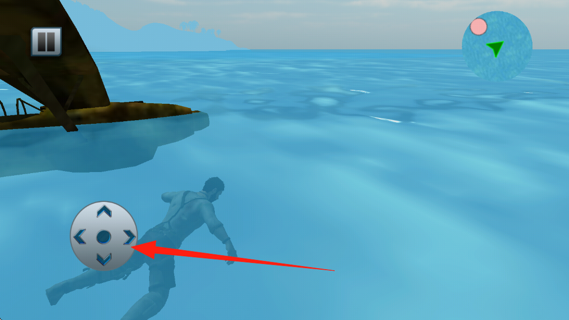 3、游戲中通過左下角方向鍵控制角色在水中移動(dòng),按指示操作向目標(biāo)位置前進(jìn),撥動(dòng)輪盤移動(dòng)人物。