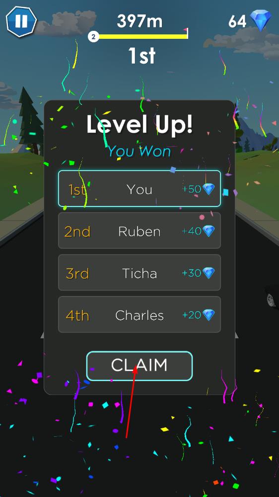 1、賽道切換超車:通過滑動屏幕靈活切換賽道,避開障礙超越對手,在密集車流中尋找突破機(jī)會,提升沖刺效率與獲勝可能。