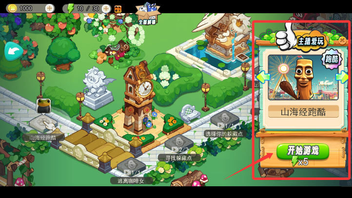 2、從游戲大廳進(jìn)入"山海經(jīng)跑酷"模式,點(diǎn)擊挑戰(zhàn)鍵即可載入特色賽道場景。