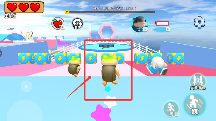 3、操作萌寵角色左右移動,注意閃避前方的危險(xiǎn)障礙,保持前進(jìn)勢頭。