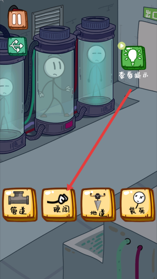 3、身處實(shí)驗(yàn)室場(chǎng)景時(shí),選擇硬闖按鈕,操控火柴人嘗試突破當(dāng)前區(qū)域,以此開啟逃生進(jìn)程,推動(dòng)逃亡劇情發(fā)展。
