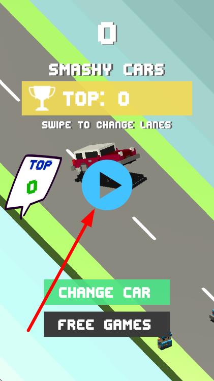 1、進(jìn)入游戲主界面,點(diǎn)擊藍(lán)色播放按鈕,開(kāi)啟汽車(chē)公路飛馳挑戰(zhàn),準(zhǔn)備體驗(yàn)換道躲避、撞擊玩法。