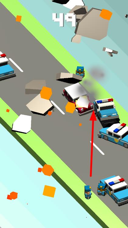 3、遇到警車(chē)圍堵時(shí),靈活換道,讓紅色汽車(chē)撞擊警車(chē),突破圍堵,同時(shí)注意躲避路障、石塊,爭(zhēng)取更高分?jǐn)?shù)。