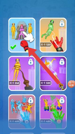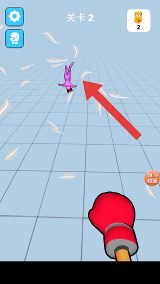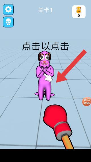 2、呈現(xiàn)了關(guān)卡1的游玩場景,玩家需要根據(jù)文字提示:點擊以點擊進行相對應(yīng)的操作,一拳將角色擊飛出去。