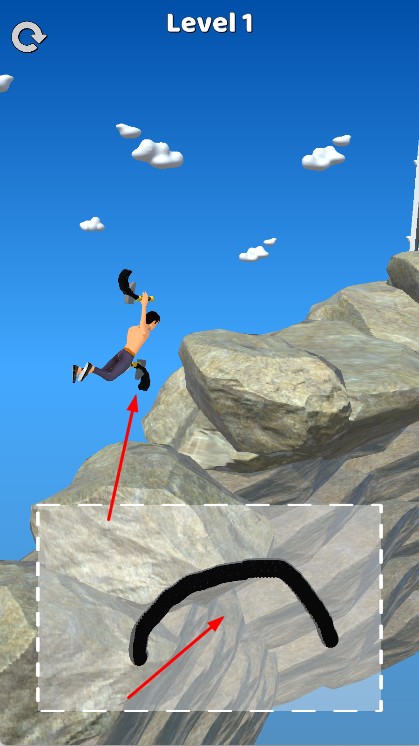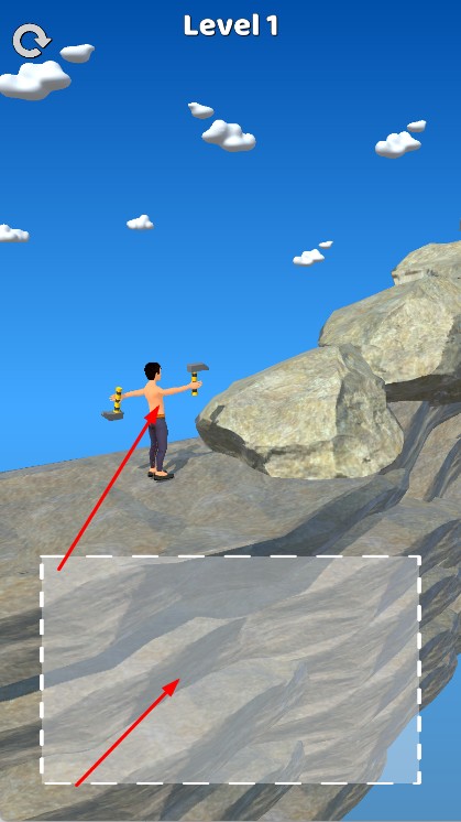 1、進入界面Level1,操控角色,在巖石地形攀爬,點擊屏幕調整鎬的落點,跨越懸崖、障礙。