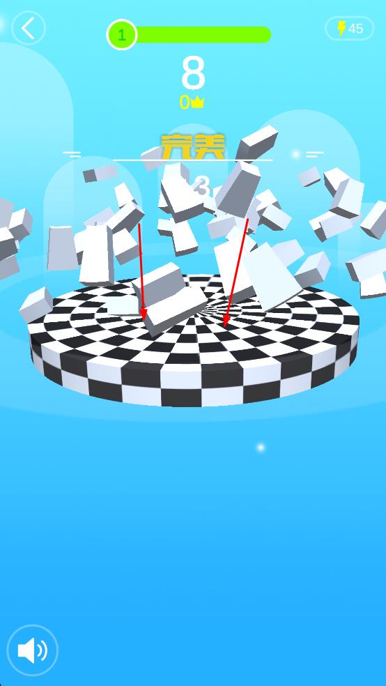 3、收集完畢后,平臺破碎,白球抵達(dá)底部棋盤格,達(dá)成關(guān)卡目標(biāo)。