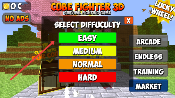 1、在CUBE-FIGHTER-3D主界面,點(diǎn)擊右側(cè)ARCADE選項(xiàng),進(jìn)入難度選擇界面,可依據(jù)實(shí)力挑選對(duì)戰(zhàn)難度,開啟格斗挑戰(zhàn)之旅。