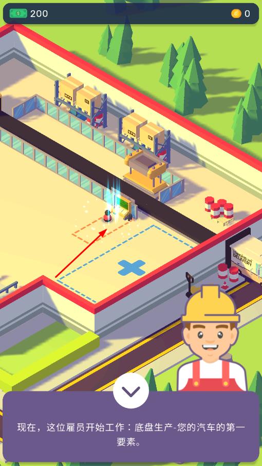 1、進入游戲后選擇初始工廠區(qū)域,放置基礎(chǔ)汽車生產(chǎn)線,啟動設(shè)備開始生產(chǎn),通過售賣汽車獲取初始金幣收益。