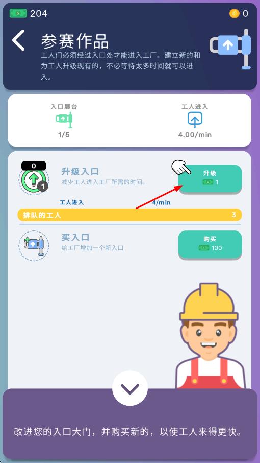 3、開啟掛機模式讓工廠自動運轉(zhuǎn),積累足夠金幣后解鎖小鎮(zhèn)新區(qū)域與高級工廠,吸引更多顧客提升整體收益。