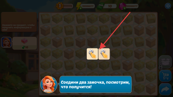2、在消除關(guān)卡,按提示Соедини два замочка,連接兩個(gè)鑰匙圖標(biāo),解鎖物品,收集道具。