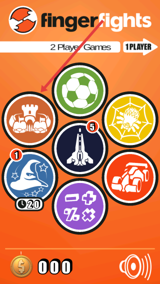 1、在fingerfights游戲主界面,可以點擊城堡圖標模式,進入沙堡攻防玩法,開啟對戰(zhàn)挑戰(zhàn)。
