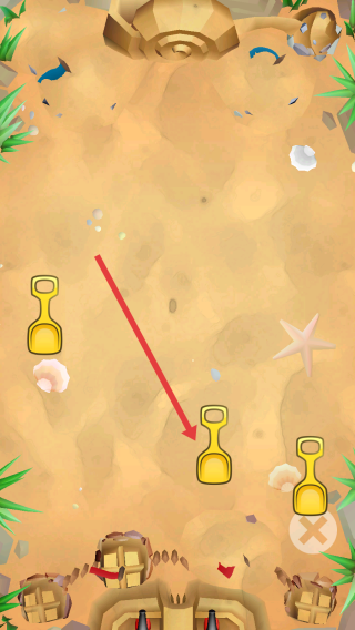 3、可以滑動黃色沙鏟,調(diào)整位置,修復己方沙堡,鞏固防御,應對敵方攻勢,推進關(guān)卡。