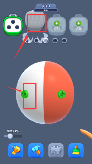 1、開始游戲后,點(diǎn)擊屏幕上的螺絲并將其拖動(dòng)到對(duì)應(yīng)的孔位中,每個(gè)孔位對(duì)應(yīng)特定顏色的螺絲。