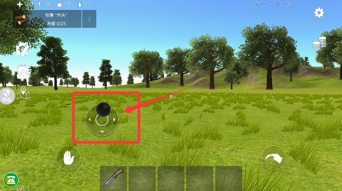3、進(jìn)入游戲世界后,使用左側(cè)搖桿控制角色在森林等場(chǎng)景自由行動(dòng)。