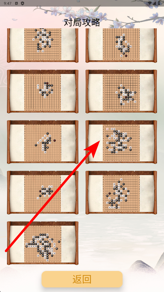 2、在對(duì)局攻略界面,有諸多經(jīng)典棋局示例,選擇感興趣的棋局進(jìn)行研究,分析每一步落子邏輯,學(xué)習(xí)高手如何布局、攻防與收官,積累實(shí)戰(zhàn)經(jīng)驗(yàn)。