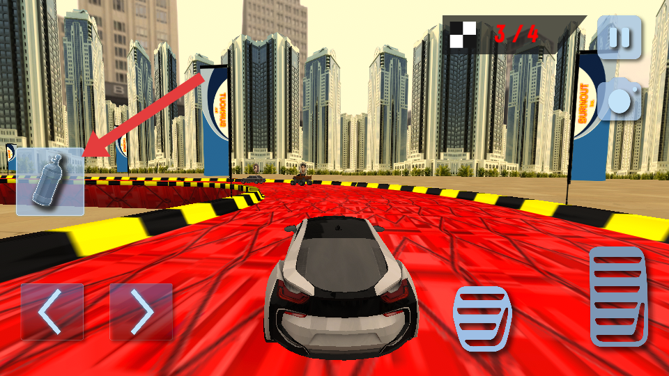 2、在行駛中需要留意左側(cè)的技能道具瓶,需要及時(shí)使用,目前落后許多,正是使用氮?dú)饧铀倨康臅r(shí)候。