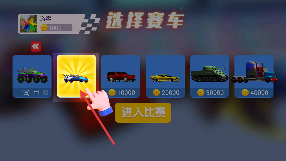 1、選擇心儀車(chē)輛開(kāi)始任務(wù),通過(guò)虛擬按鍵控制方向與加速。