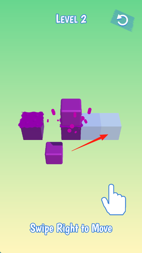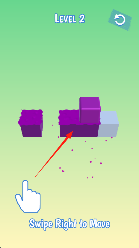 1、第2關(guān)按【SwipeRighttoMove】向右滑動紫色方塊、使其移動、推進路徑、完成操作。
