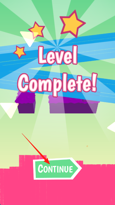3、通關(guān)后點擊【CONTINUE】進入下一關(guān)、重復(fù)滑動操作、挑戰(zhàn)更多關(guān)卡、完成游戲流程。