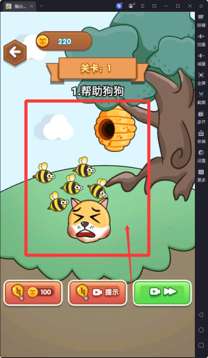 2、游戲的主要任務是幫助狗頭不被蜜蜂蜇到,玩家需要通過使用橡皮擦等道具來幫助狗頭躲避蜜蜂,完成關卡挑戰(zhàn)。