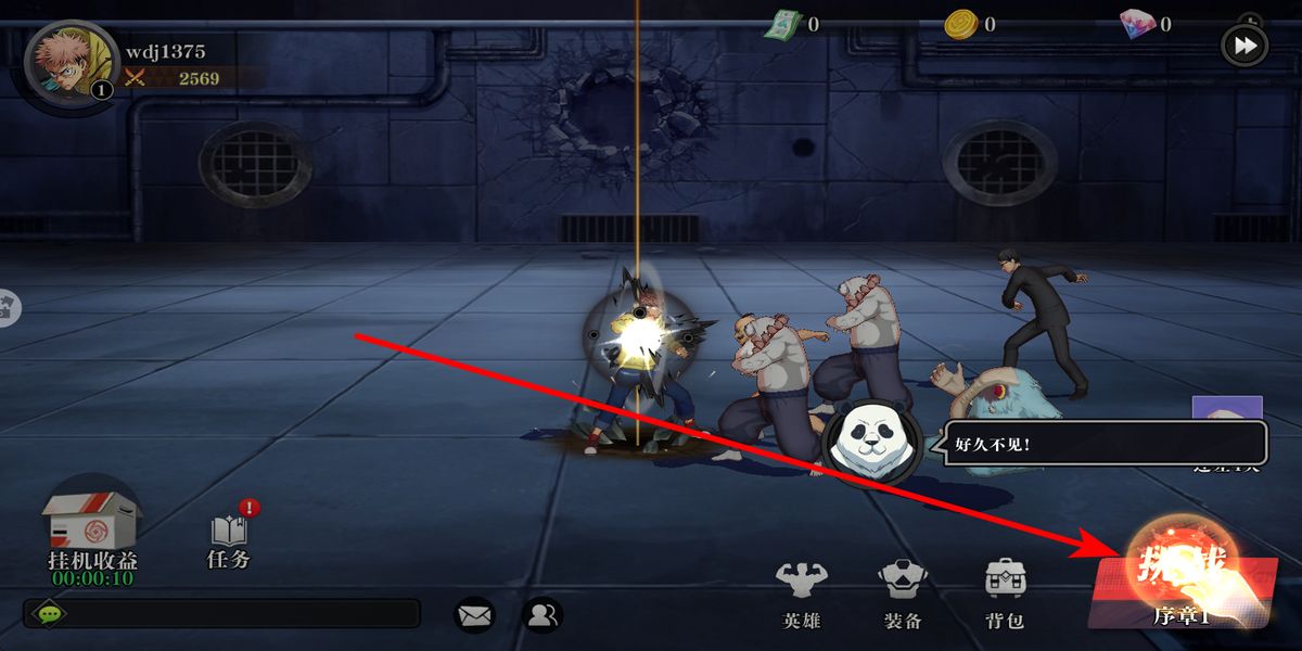 2、熟悉界面功能,左側(cè)可查看掛機(jī)收益任務(wù)等,右側(cè)關(guān)注英雄技能釋放,遇敵方,利用技能普攻攻擊注意技能冷卻與連招搭配,提升輸出。