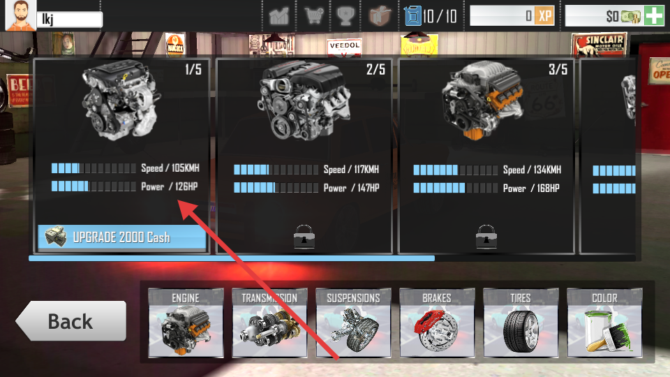 2、使用賺取的金幣改裝車輛外觀涂裝或升級(jí)發(fā)動(dòng)機(jī)等核心部件。