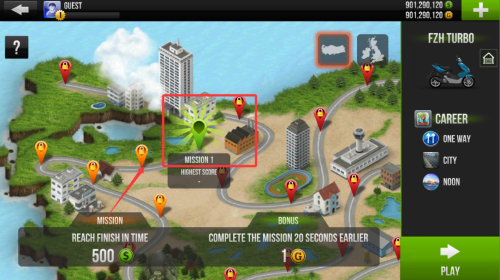 4、關(guān)卡選擇界面按難度分級,包含城市、山地等不同主題賽道,支持重復(fù)挑戰(zhàn)刷新紀(jì)錄。