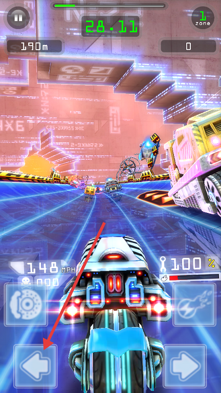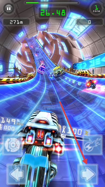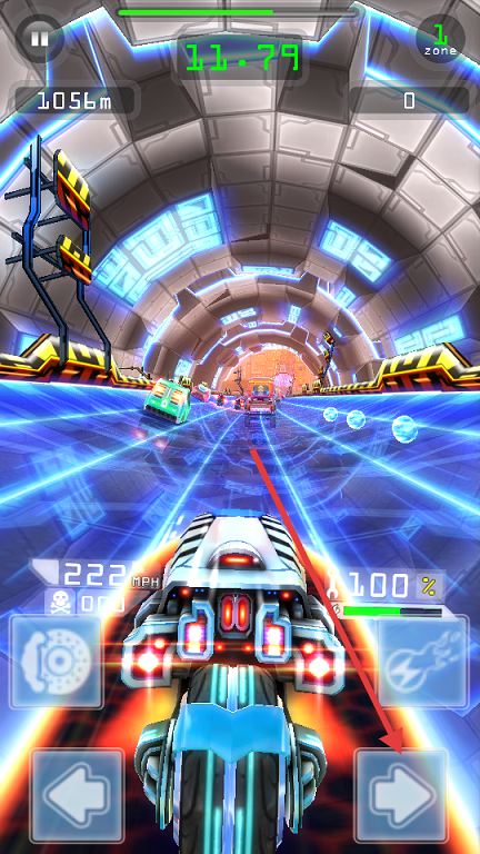 2、觸碰藍(lán)色渦輪帶獲得加速,連續(xù)通過(guò)可疊加速度倍數(shù)。