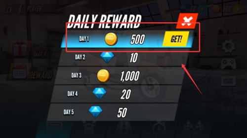 4、每日登錄獎勵包含金幣、配件等實用資源,幫助提升后續(xù)比賽競爭力。