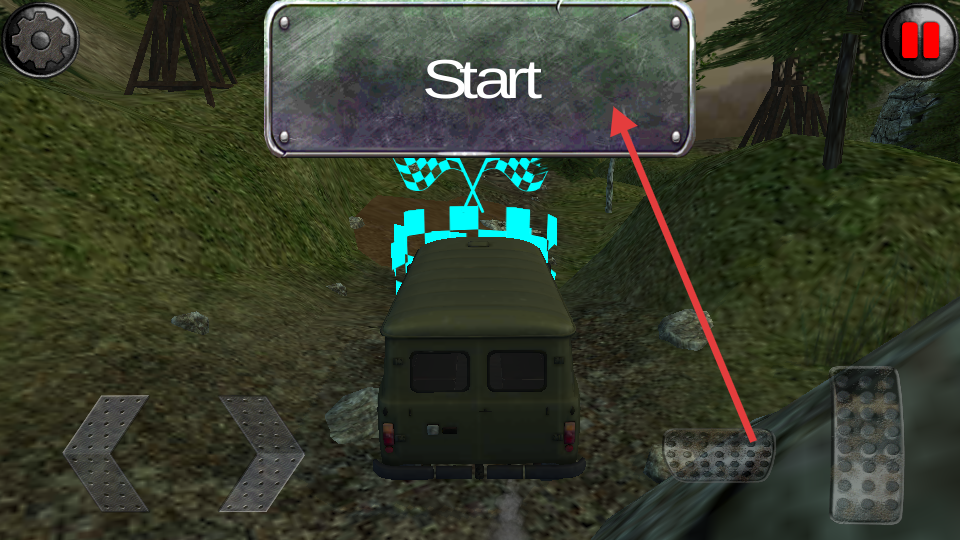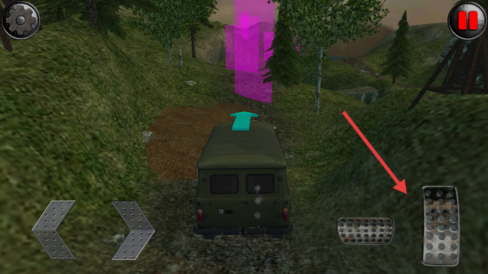 1、通過(guò)虛擬方向盤(pán)控制車(chē)輛方向,長(zhǎng)按油門(mén)鍵激活低速四驅(qū)模式。