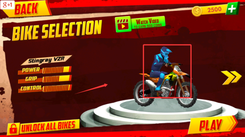 3、車庫內(nèi)陳列10款專業(yè)越野摩托,根據(jù)賽道特性挑選最適合的性能座駕。