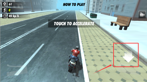 4、使用虛擬方向盤或重力感應(yīng)操控摩托車,在川流不息的車陣中尋找安全路線前進。