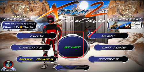 1、啟動游戲后點擊start按鈕,立即進入充滿挑戰(zhàn)的特技摩托世界。