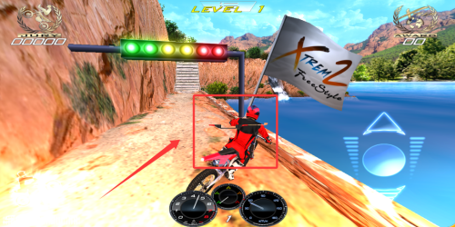 3、通過重力感應控制摩托姿態(tài),在騰空時完成前空翻、后輪滑等特技動作。