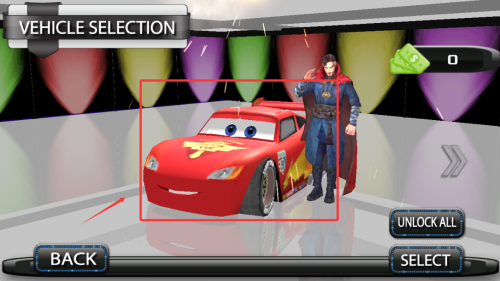 3、車輛庫提供十余款性能各異的超級英雄賽車,根據(jù)賽道特性選擇最適合的車型進(jìn)行比賽。
