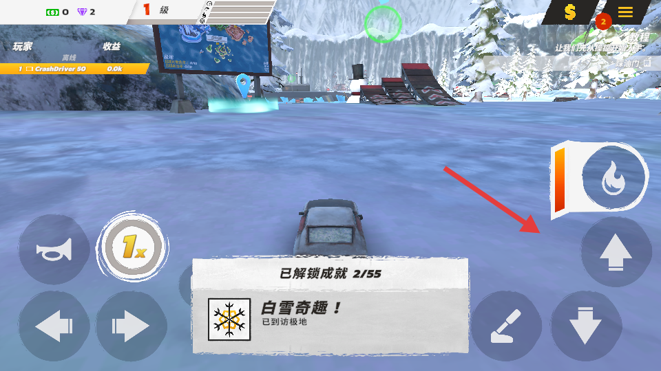 1、選擇巨輪卡車或坦克等特殊載具,在開放地圖完成特技動作收集金幣。